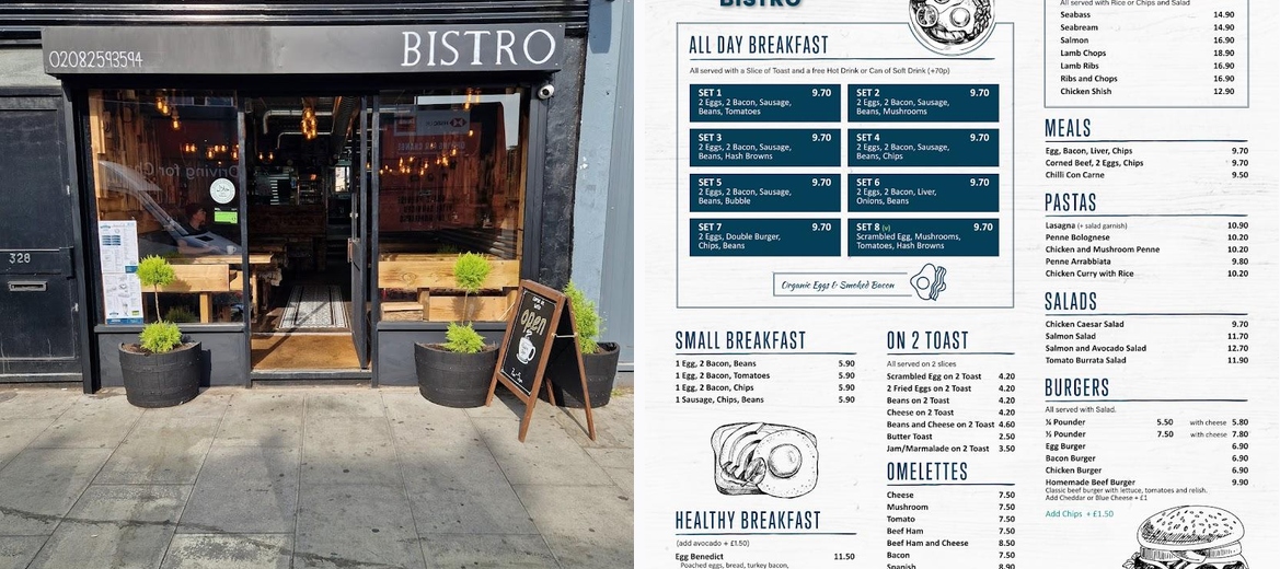 Riviera Cafe brings a delightful culinary experience to 328 Norwood Rd, Norwood, London. This bistro-style cafe specializes in all-day breakfast, offering a tempting array of dishes from homemade pasta to charcoal-grilled delights. The menu features something for every taste, including fresh seafood and hearty lamb chops. Known for its casual and cozy atmosphere, the cafe invites solo diners, families, and food lovers alike to enjoy a quick bite or a leisurely meal. With a strong focus on quality ingredients and customer service, Riviera Cafe undoubtedly stands out as a beloved local spot.