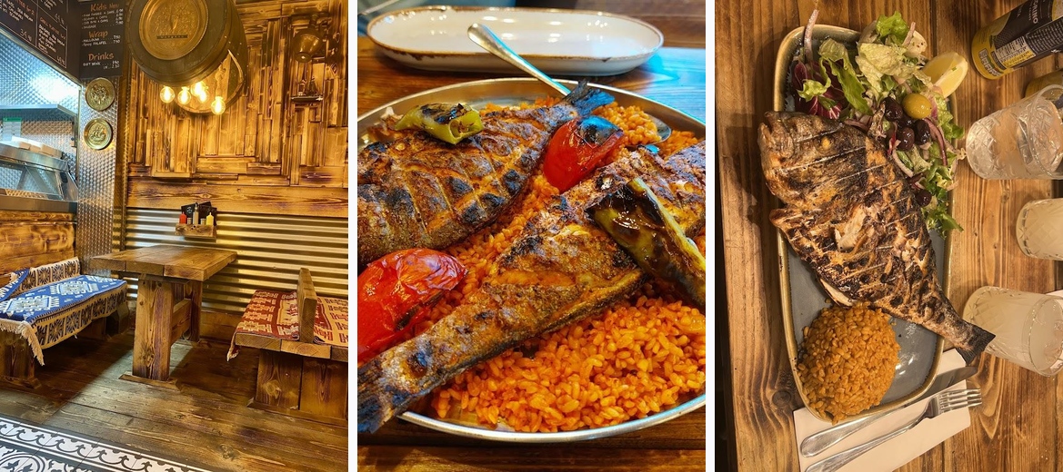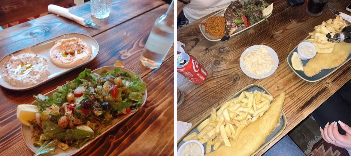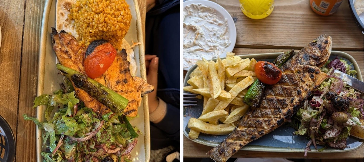 I will absolutely be back. This is a very unassuming place but trust me the food is excellent. The fish was cooked to absolute perfection and very fresh. The salad was crisp, varied and flavourful. I loved the touch of sumac. The service was brilliant the staff are friendly, considerate and engaged and the place was spotless. I also really enjoyed the interior design, it’s very inviting and the music was a chill international mix. If you haven’t been definitely worth checking out. My meal with hot tea was £17.50 and it was a huge portion.